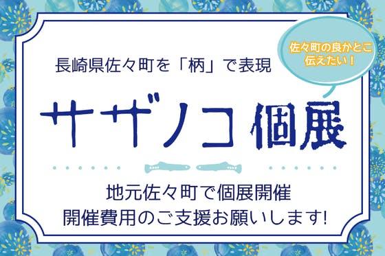 昨年好評だった、佐々町柄雑貨サザノコの個展を今年も地元佐々町で開催したい!佐々の良かトコ広めるためのご支援お願いします!