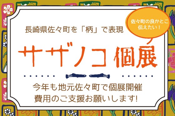 佐々町柄雑貨屋サザノコの個展を 地元佐々町のギャラリーで今年も開催するための 資金を集めています!地元佐々町のよかとこ広めたい!