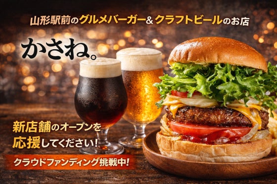 2026年5月、山形市双葉町にハンバーガーとクラフトビールの店「かさね。」をオープンします。 山形牛や地元食材を使ったハンバーガーと、クラフトビールを気軽に楽...