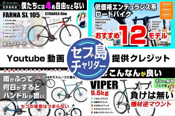 自転車系 Youtubeチャンネル(セブ島チャリダー)への提供/支援/スポンサードのお願い。リターンは動画内でのお名前や法人名、ブランド名などの表示などをさせて...