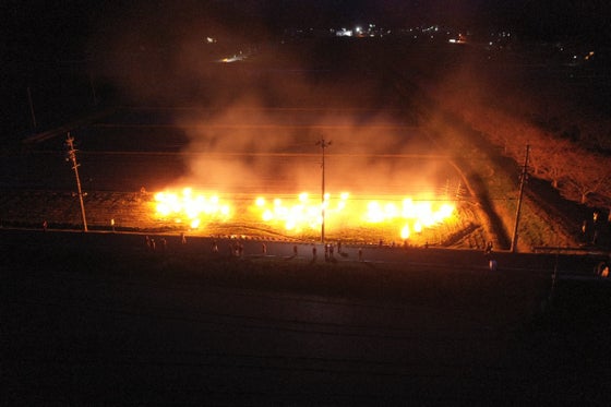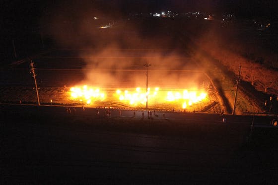 令和7年4月5日に岐阜県山県市赤尾の田んぼで、炎で「イノチ」の文字を描きます。子供に、農業に関心を持ってもらったり、田の有効利用を進めたり、有機的農業の一環とし...