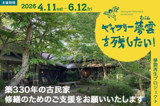 奈良・室生の山里に佇む、築330年の古民家ギャラリー夢雲。27年間灯し続けてきたこの場所が、いま老朽化により存続の危機にあります。未来へつなぐための再生プロジェ...