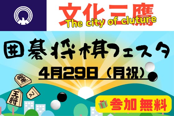 4月29日(月・祝)に三鷹囲碁将棋フェスタを開催いたします。 囲碁将棋が初めての方でも両方をお楽しみいただける参加無料のイベントです。 囲碁将棋のプロ棋士も来場...