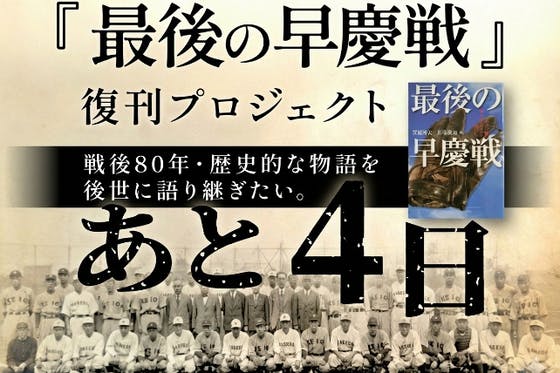 戦後80年、昭和100年、東京六大学野球連盟結成100周年を迎えるいまこそ、祖父の絶版本『最後の早慶戦』を復刊すると同時に電子書籍化し、昭和18年10月16日...