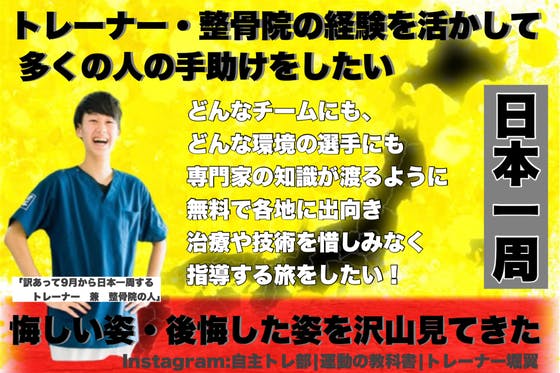 【日本一周企画】トレーナー・整骨院の経験を活かして多くの人の手助けがしたい!