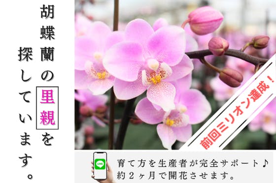 昨年大好評だった「胡蝶蘭の里親プロジェクト」が今年もスタート!小さな傷や花の欠けで贈答品になれないミディ胡蝶蘭たちに、新たな生きる道を見つけてあげたい。椎名洋ラ...