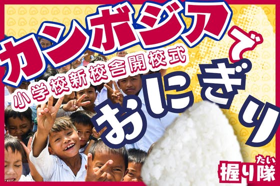 みんなの思いで実現したカンボジアの新校舎の開校式で、日本の心のこもったおにぎりを握り、参加者全員で分かち合います。子どもたちからもらった元気やパワーのお返しに、...