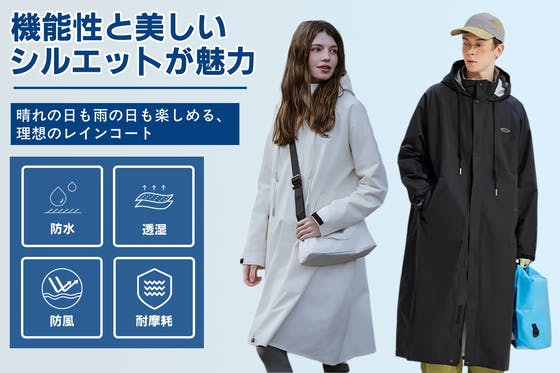 雨をしっかり弾き、快適に着用できるこのレインコートは、豪雨や登山時にも水滴をしっかり防ぎます。ロング丈で足元までしっかり覆い、スクーターに乗る際も濡れにくい設計...