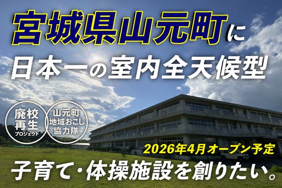 来年4月、宮城県・山元町に「室内遊び場不足」と「高齢化による健康課題」を解決する、日本一の子育て&体操施設が誕生します!子どもからお年寄りまで多世代が集い、運動...