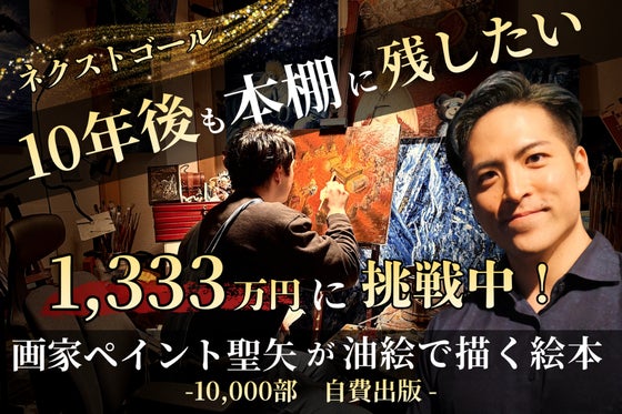この絵本はあなたが思っているような絵本ではありません。圧倒的時間をかけた48枚の油彩画に長編の物語が収録されている全90ページ程の分厚い絵本。その絵本を一万部自...