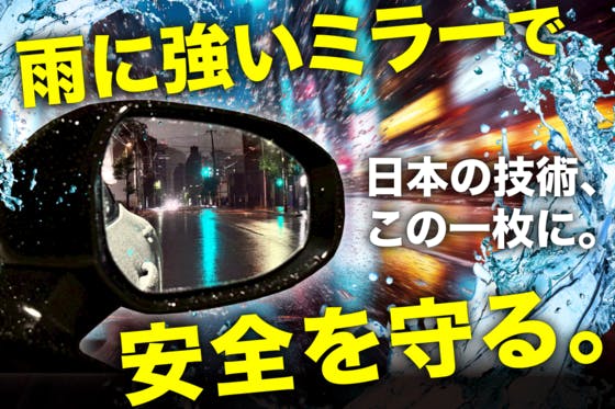 雨の日の視界不良をすっきり解消!Mirror Filmはサイドミラーにサッと貼るだけで水滴を弾き、停車中でもくっきり見える超撥水フィルムです。独自の試験テスト期...