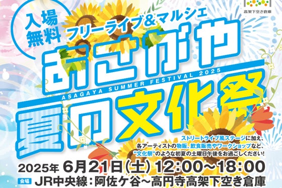JR阿佐ヶ谷駅~高円寺駅高架下空き倉庫を会場に、コロナ禍の2021年から開催しているあさがや文化祭シリーズ! 今年も「春の文化祭」に続き『あさがや夏の文化祭2...