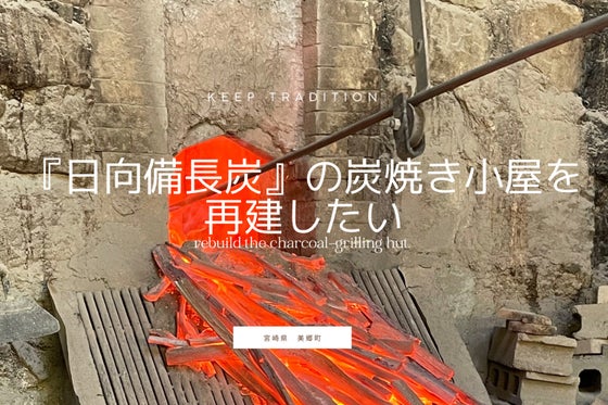 【感謝!100%達成!目指せ120万円!】 宮崎県無形民族文化財に指定されている『日向備長炭』の生産中に、火災により炭焼き小屋が全焼。生産者も少なく、伝統を続け...