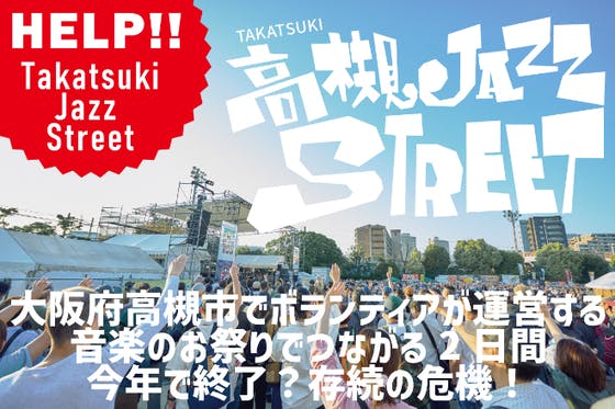 「高槻ジャズストリート」は大阪府高槻市で1999年から開催されている、すべての会場が入場無料!のボランティアで運営する手作り音楽イベントです。今回、クラウドファ...