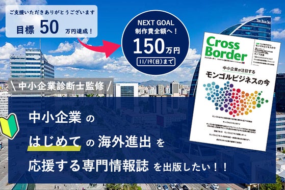 「中小企業の海外進出を応援し、地域の中小企業を起点に日本を元気にしたい!」このような思いから、私たちは中小企業向け情報誌『CROSS BORDER』を出版したい...