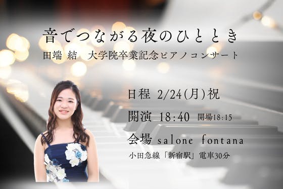 2025年2月24日(月・祝日)に田端結さんの大学院卒業記念ピアノコンサートを「salone fontana」にて開催します。3歳からピアノを始め、多彩なコンサ...