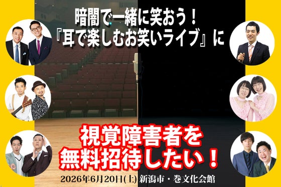 2024年開催『耳で楽しむ漫才ライブ』をスケールアップした『耳で楽しむお笑いライブ』開催! 視覚障害のある方をご招待して、暗闇の中でみんな一緒に笑ってもらいます!!