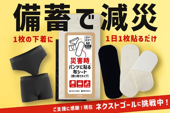 たくさんのご支援をありがとうございました。 「サイトで購入したい」「追加でほしい」などのお声に応えて、一般販売がスタートいたしました!肌に優しく下着の衛生を保ててかさばらない新しい備蓄品です。