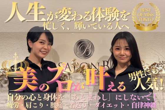 SalonB赤坂は、ベストオブミス東京の主宰・松尾好美が運営し、ミスコン2025優勝者と共に施術を手がける、最新機器を揃えた完全プライベートサロンです。美容・回...