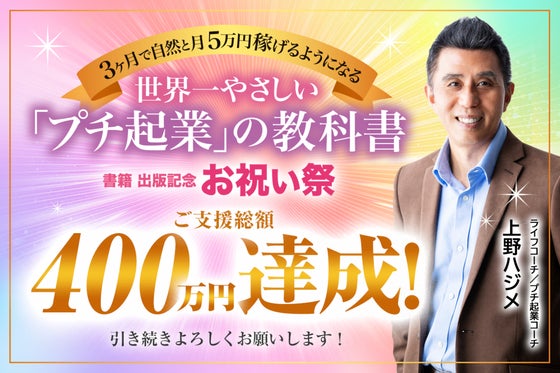 上野ハジメです。12月12日、プレジデント社さんより、初の書籍「3ヶ月で自然と月5万円稼げるようになる〜世界一やさしい『プチ起業』の教科書」の出版が決定しました...