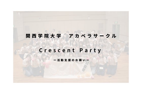 関西学院大学アカペラサークルCrescent Partyでは、8月にサマーライブの開催を予定しております。しかし、昨今のコロナ禍により、運営する資金が不足して...