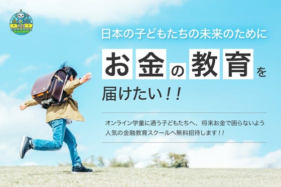 子どもたちを西野亮廣氏のオンラインスクール「西野の親子で通うお金の学校」にご招待し、未来を担う子どもたちを支援するプロジェクトです。
