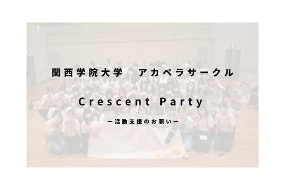 関西学院大学アカペラサークルCrescent Partyでは、8月にサマーライブの開催を予定しております。しかし、昨今のコロナ禍により、運営する資金が不足して...