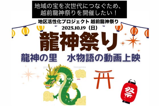 今年の10月19日に越前市神山地区と王子保地区を中心とした地域活性化を目的に【越前龍神祭り】を[越前打ち刃物会館・池ノ上町]で開催します。