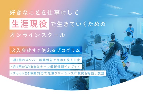 まだ間に合う。「大人でも、今からでも好きなことで生涯現役」を目指せる環境。累計受講者25,000人の実績を持つ「フリーランスの学校」による、「100年変わってな...