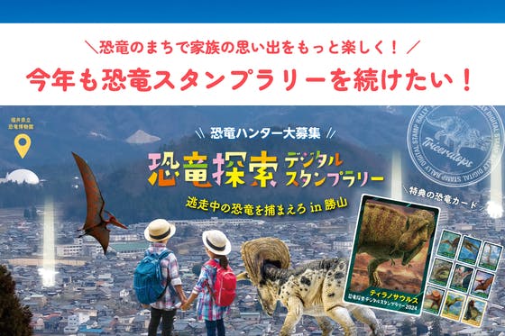 昨年、親⼦で⼤好評だった『恐⻯を探す冒険スタンプラリー』 今年も勝⼭のまちを舞台に、恐⻯たちとのワクワクを続けたい! まち全体を「遊び場」に変えるこの取り組...
