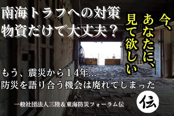 私達は仙台を中心に防災啓発活動を行なう(一社)三陸&東海防災フォーラム伝です。東日本大震災から14年、現在各地で自然災害が続き、防災意識の共有が必要不可欠です。...