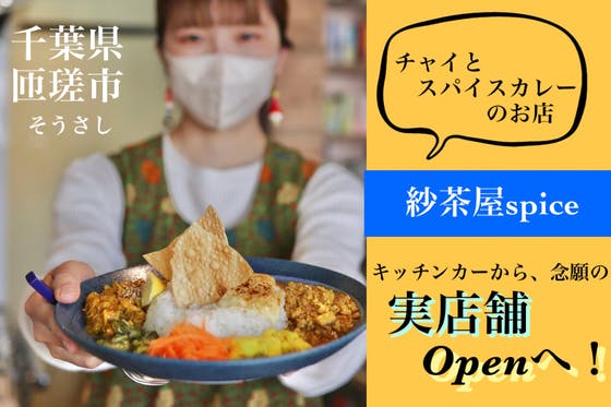 千葉県匝瑳市を拠点に、チャイとスパイスカレーを届けるキッチンカー【紗茶屋spice】です! このたび、念願の実店舗をオープンします。 生まれ育った街 匝瑳市に...