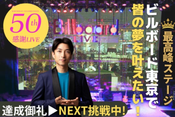 3歳から瞑想。小学生で起業した市村よしなり。の生誕50周年を記念し、夢を叶えたいメンバーと共に、日本最高峰のライブステージ『ビルボード東京』を1日貸し切り『夢を...