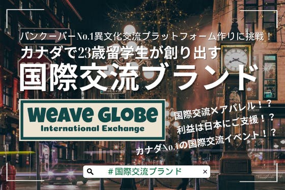 日本人と外国人が繋がる国際交流ブランド「WEAVE GLOBE」をカナダで立ち上げます!国際交流イベント・アパレルブランドを通し日本と世界が繋がるきっかけを創り...