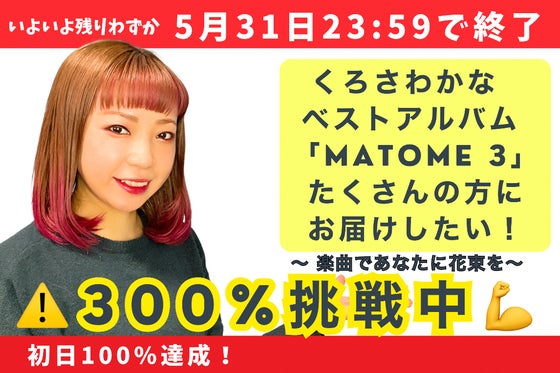 くろさわかな3枚目となるベストアルバム「MATOME 3」の制作・発売することを決意!CDご予約(リターンにて)、そしてみなさまのサポートが何よりも必要となりま...