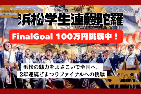 浜松市の学生を中心に活動している、浜松学生連鰻陀羅です。地元遠州・浜松の魅力をよさこいを通じて全国へ広めたい。資金不足、人数不足を乗り越え、2年連続どまつりファ...