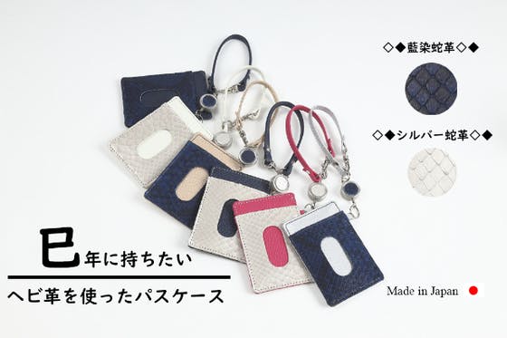 今年は12年に一度の巳年!ヘビ革の商品をもって今年1年を良い年にしましょう♪藍染ヘビ革と白ヘビ革(パール加工)のお好きなヘビ革をお選びいただけます!