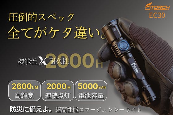 突然の停電、予期せぬ災害。暗闇に包まれる不安な夜に、家族を守る一筋の光、それが「EC30」。最大2000時間、約83日間止まらず光を灯し続ける驚異のスタミナ。2...