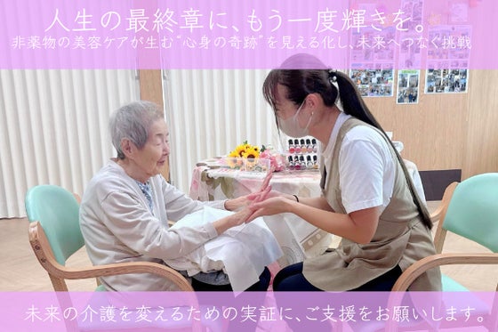 美容ケア(ハンド・ネイル・フェイシャルなど)を通じて感じられる“笑顔や気持ちの変化”を丁寧に記録し、介護現場に癒しの時間を届けたいと考えています。本プロジェクト...