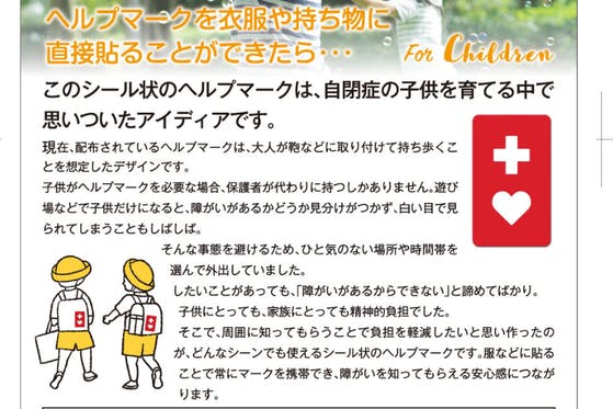 障害児の安全、そしてママの心を守る!衣服に貼るヘルプマーク製作プロジェクト