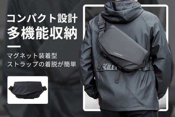 マグネット型ストラップを採用しており、力も手間もかからずに楽に着脱できます。5Lの大容量で、11インチiPad、傘やボトルでも収納可能です。充実したポケットでお...