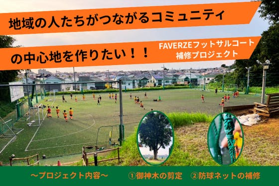 クラブチームの子どもたちやフットサルコートをご利用いただくお客様が、もっと快適に施設をご利用できるよう、御神木の剪定と防球ネットの修繕を実施します。地域の支援と...