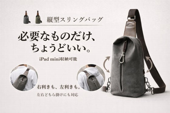 手ぶらで身軽に出かけたい。 そんな日常の声から生まれた、縦型スリングバッグです。 iPad miniや長財布、スマートフォンがすっきり収まり、 通勤・休日・旅行...