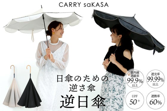 一秒たりとも焼けたくないあなたへ。逆さ傘のトップブランドCARRY saKASAキャリーサカサが新しい日傘の形を提唱いたします。デザイン性、日傘としての性能(...