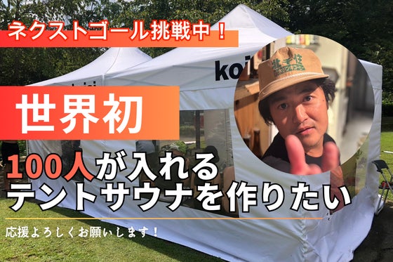 世界最大100名入れる超エンタメテントサウナを作りたい! 室内では映画鑑賞や漫才、ライブパフォーマンスを汗を書きながら楽しめる最先端エンターテイメントを提供...