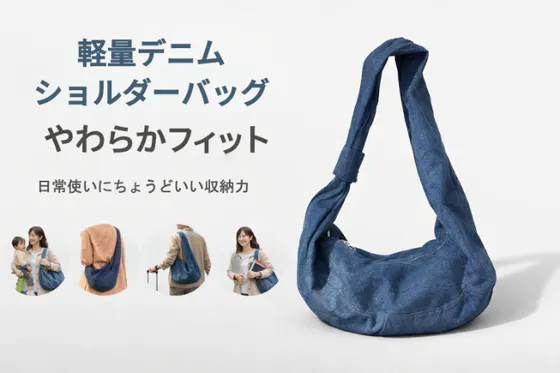 肩に掛けるだけで自然に身体になじむ、柔らかなデニム素材のワンショルダーバッグ。 軽量設計ながらしっかり収納でき、ファスナー開閉で安心。通勤・買い物・カフェ・旅行...