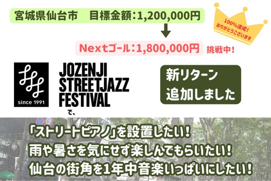【ネクストゴール挑戦中!】毎年9月に宮城県仙台市で開催している市民音楽祭「定禅寺ストリートジャズフェスティバル」。30年以上続いてきたお祭りを、もっと楽しく、未...