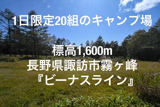 ドライブ、ツーリングスポットのビーナスラインエリアでキャンプはいかがでしょうか? 標高1600mのキャンプ場、星空を眺めながら無心になれる場所です。 1日限...