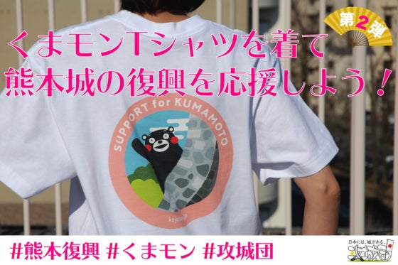お城めぐり支援サイト「攻城団」では熊本城の修復再建を支援するために「くまモン」がデザインされたオリジナルのチャリティTシャツを製作・販売します。このTシャツの販...