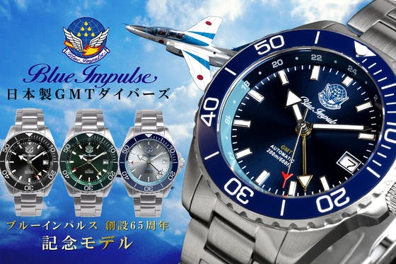青と白の世界観を腕に。日本製機械式GMTムーブメント搭載、20気圧防水、サファイアガラス採用。ブルーインパルスの精神を宿したデザインを、普段使いしやすい4色展開...